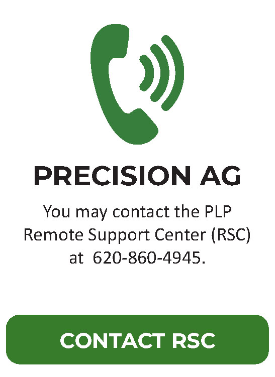 - All of our Precision Ag staff is working remotely. Please call the Remote Support Center at 620-860-4945.