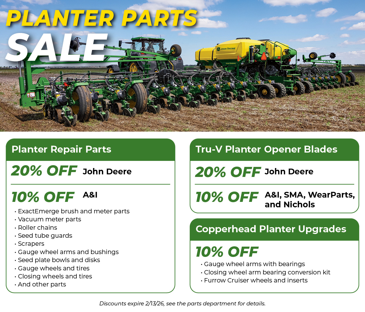 Save up to 20% on select Planter Parts and get your equipment ready for success in the field!