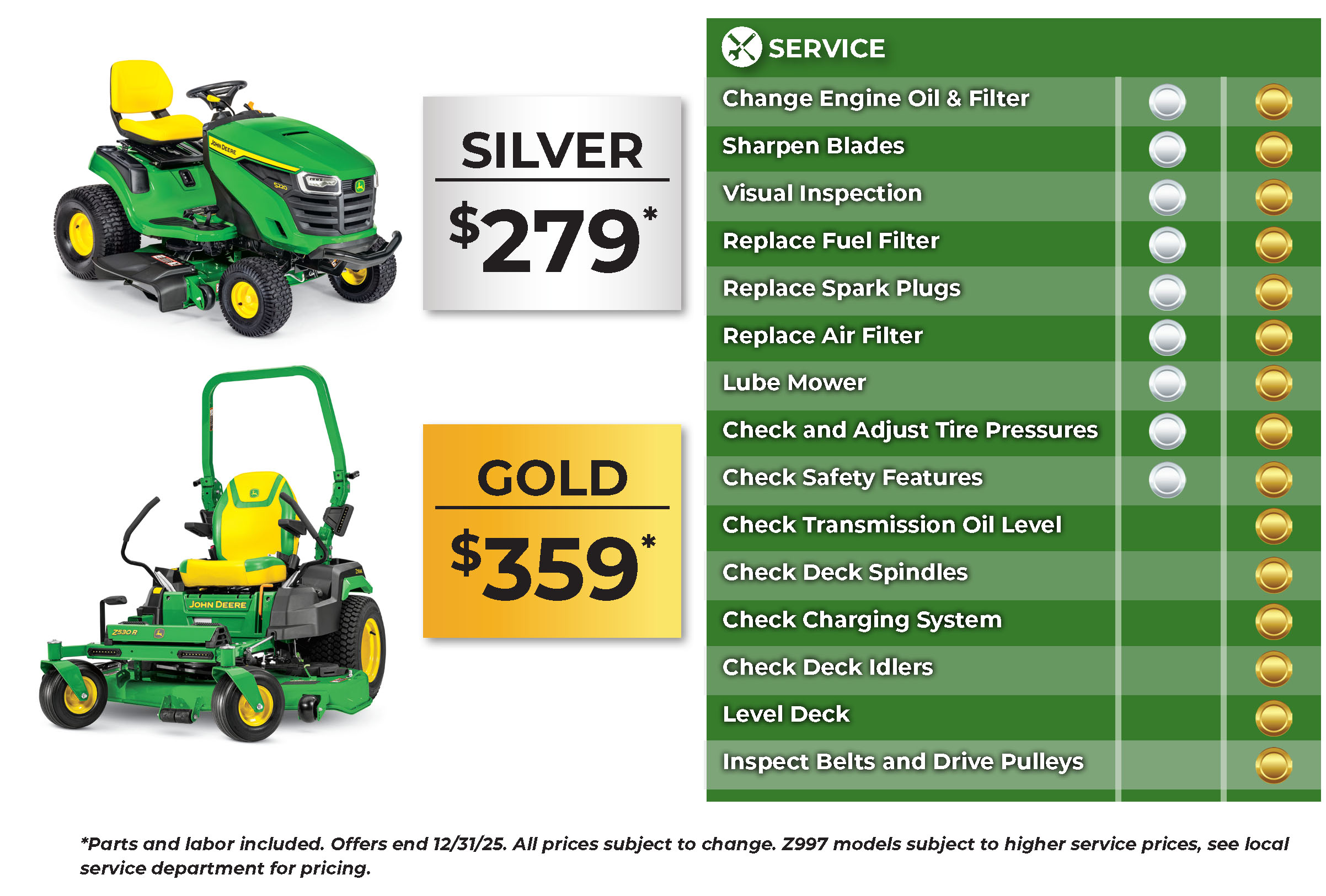 Our John Deere service centers handle everything from riding mowers and zero-turn mowers to walk-behind equipment. Whether you need blade sharpening, belt replacement, or engine maintenance, we’ve got you covered.